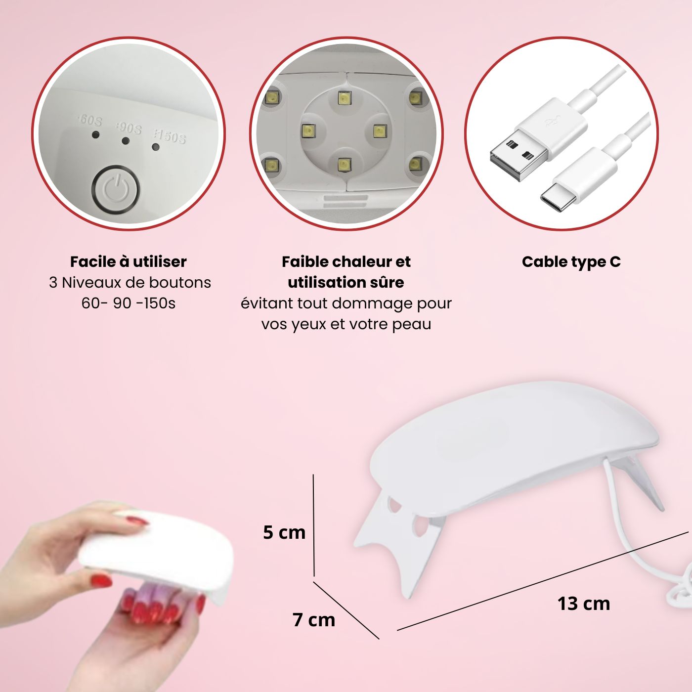 sous une lampe UV. Coupe à la longueur de tes ongles et lime les excédents. Le